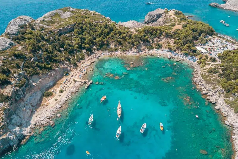 If you don’t have a car or prefer to reach the bay by water, you can book a boat trip to Anthony Quinn Bay. Tours are offered from both Rhodes Town and Faliraki, with a choice of different lengths and services.