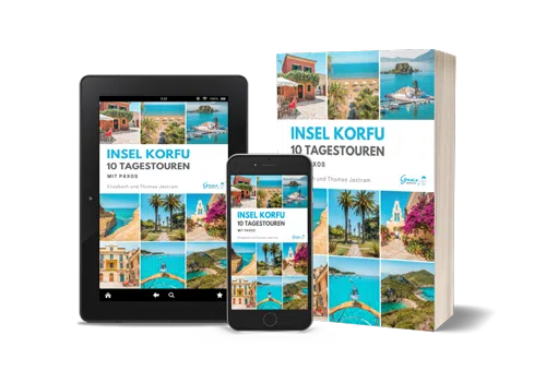 Dann geben wir dir als nützlichen Begleiter unseren Korfu Reiseführer mit auf den Weg. Darin findest du 10 Tagestouren zum Selberfahren, komplett für dich geplant. Jede Tour umfasst eine ausführliche Beschreibung, Karten für die Navigation und jede Menge Highlights, Sehenswürdigkeiten, Strände, Restaurants und vieles mehr.